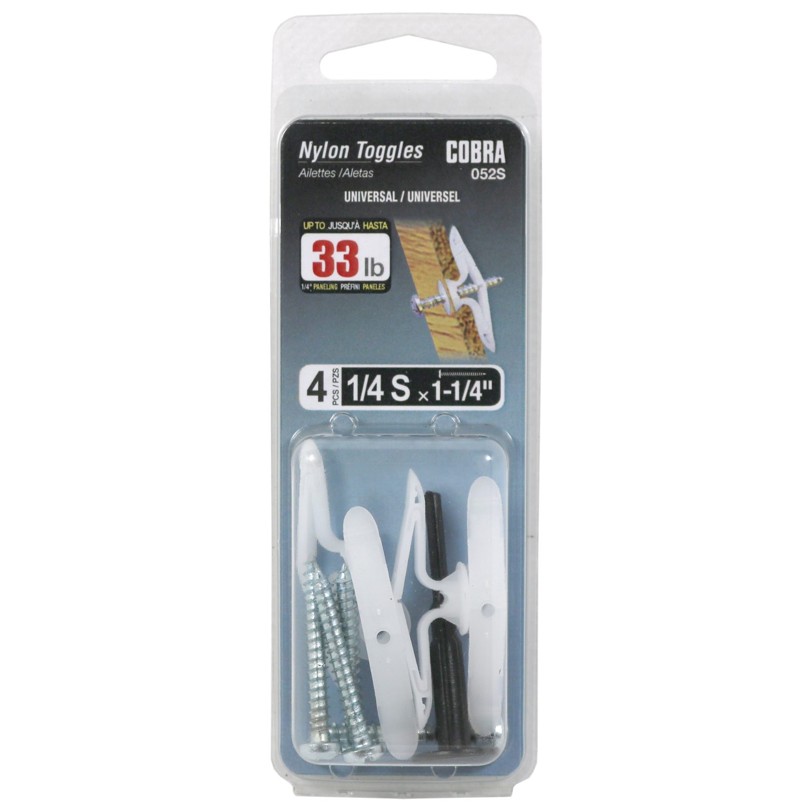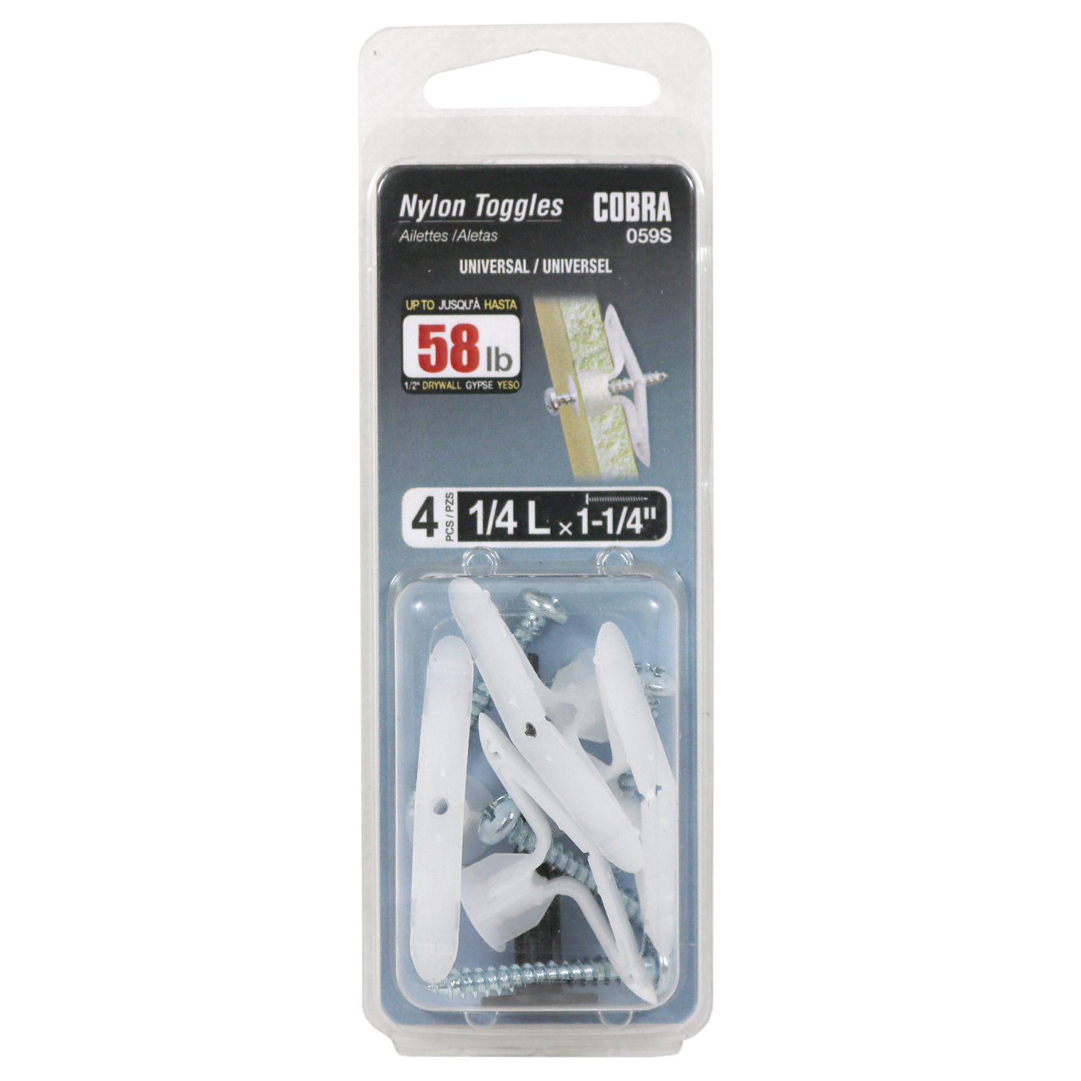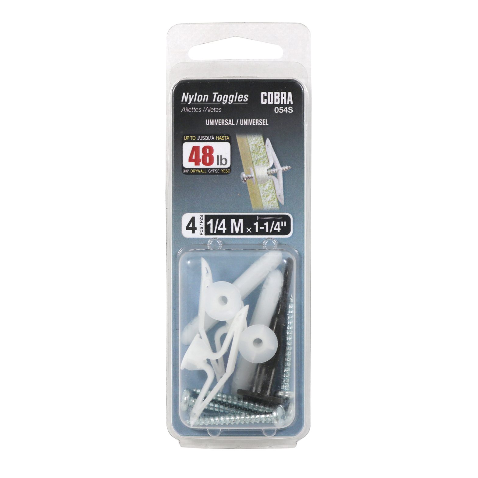 La cheville en nylon est faite de nylon renforcé et possède des ailettes qui s’ouvrent derrière le gypse. Disponible en diamètre de 1/4″ et en trois longueurs, courtes (S), moyennes (M) et longues (L). Pour un produit de remplacement plus performant, essayez le TripleGrip® de Cobra.