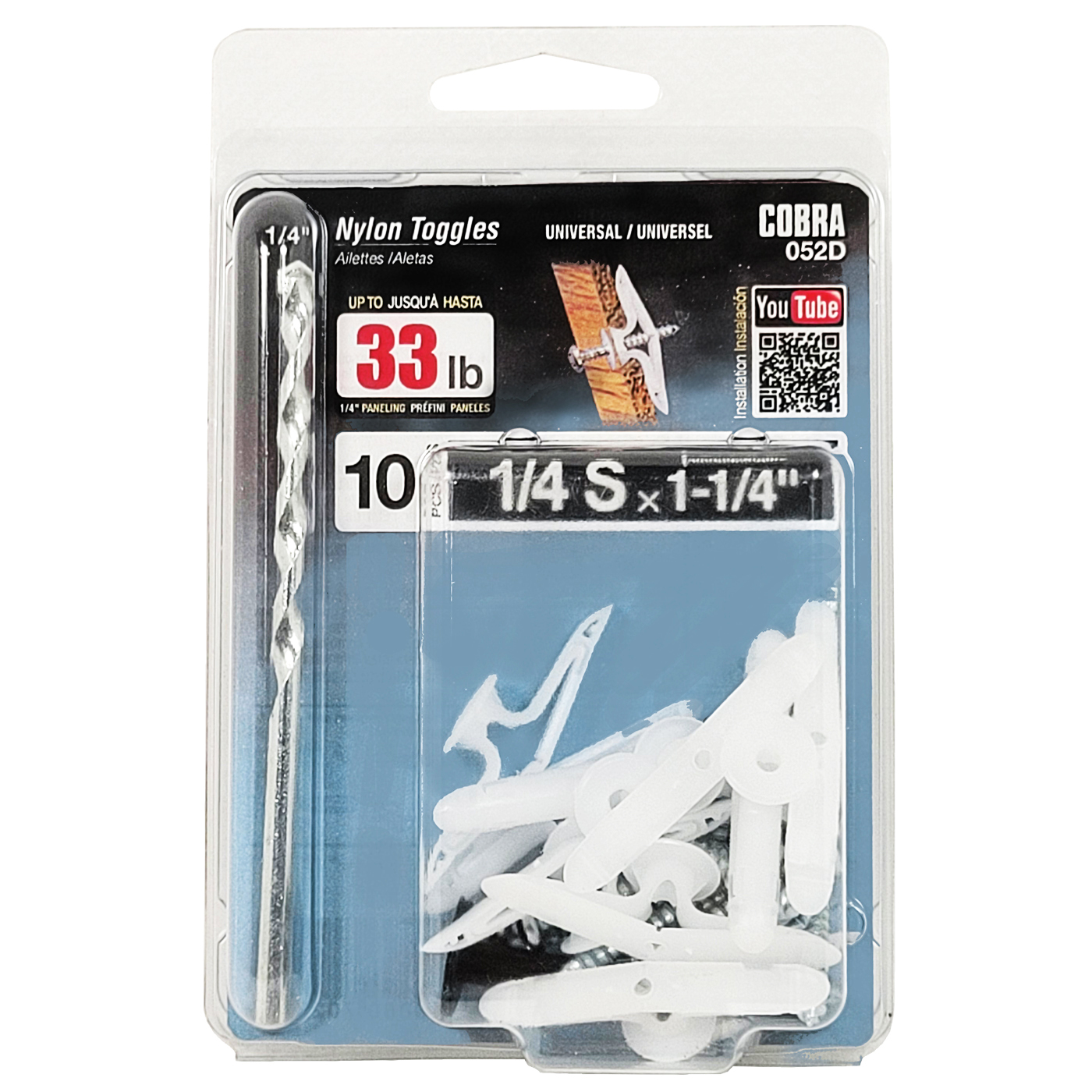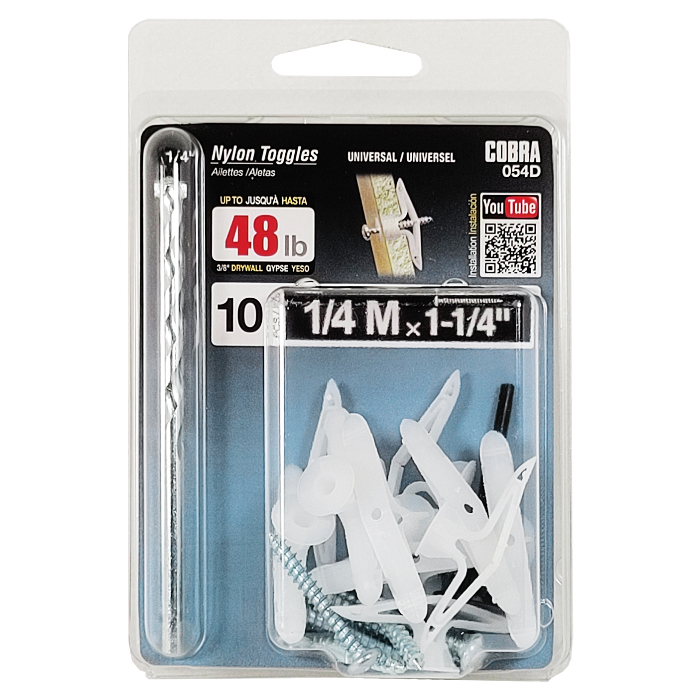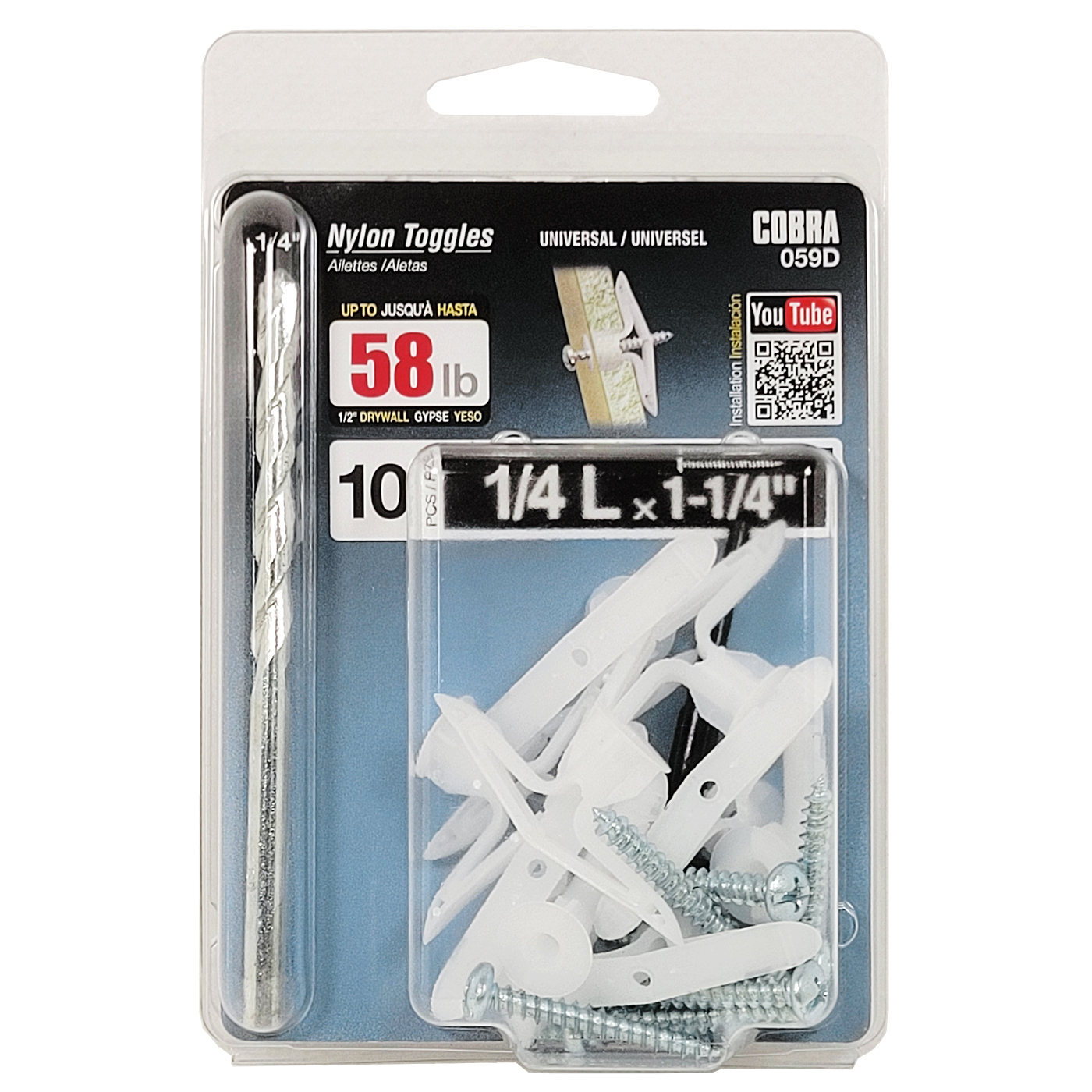 La cheville en nylon est faite de nylon renforcé et possède des ailettes qui s’ouvrent derrière le gypse. Disponible en diamètre de 1/4″ et en trois longueurs, courtes (S), moyennes (M) et longues (L). Pour un produit de remplacement plus performant, essayez le TripleGrip® de Cobra.