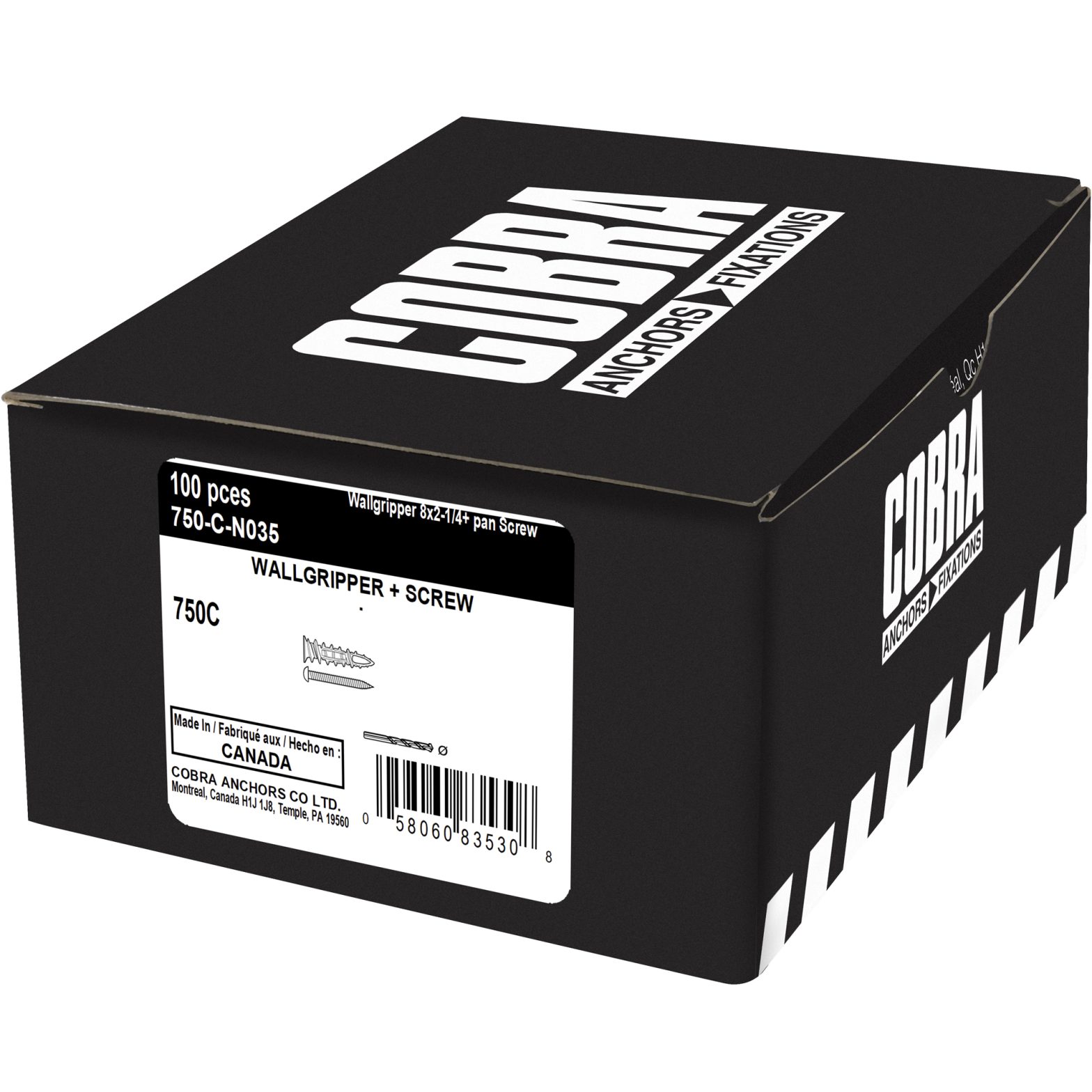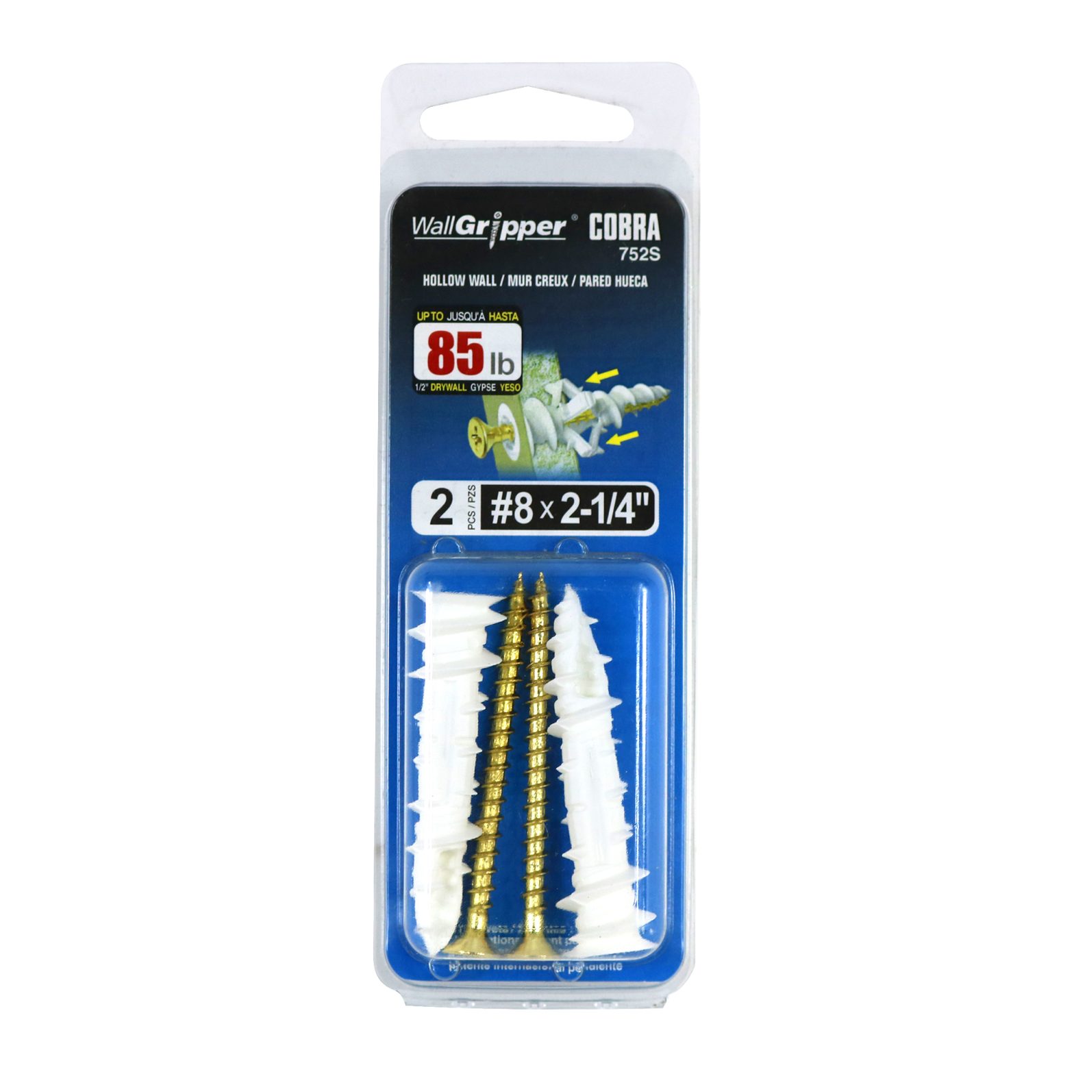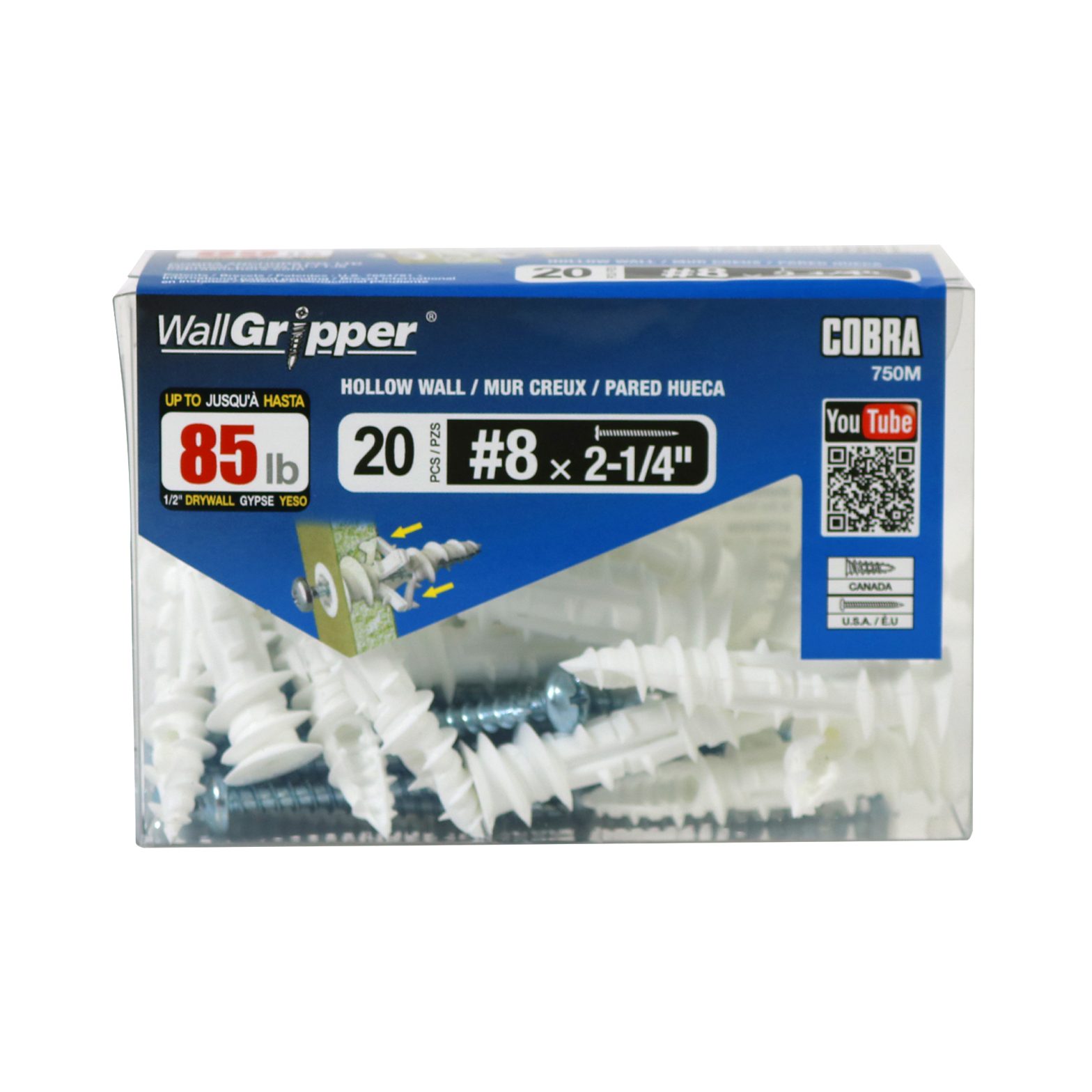 Le WallGripper est un ancrage autoforeux à expansion haute-performance compatible avec le placoplâtre. Il s’ouvre, s’agrippe derrière le gypse et est deux fois plus résistant qu’un ancrage autoforeur courant. Son design breveté vous assure d’une capacité de retenue ultime sans préperçage. Son corps de conception unique possède quatre ailettes d’expansion qui se rabattent et s’agrippent fermement derrière le gypse. Une fine pointe centrée guide l’ancrage dans le mur avec une parfaite précision. Une bordure acérée réduit la force requise pour couper le matériau. Un filet au profil acéré coupe profondément dans le trou pour assurer une capacité ultime de retenue et de stabilité sans endommager le matériau du mur.